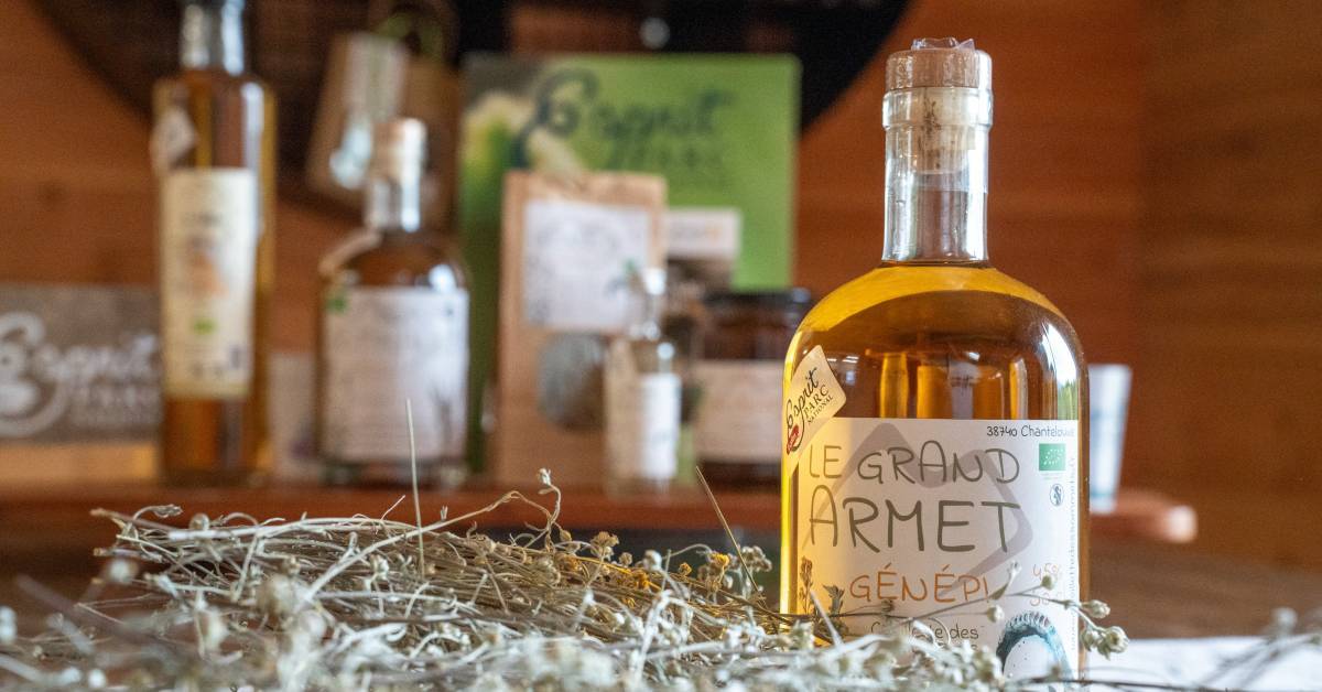 Nous cultivons dans l’Oisans des plantes comme le génépi, la rhubarbe… et cueillons en zone de montagne de l’ail des ours, du sureau, du cynorrhodon.